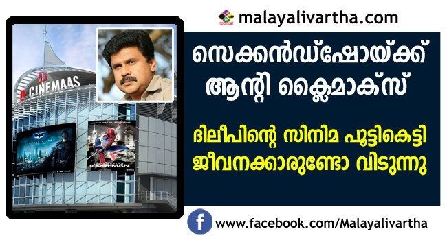 ടിക്കറ്റ് വിറ്റു തീര്ന്നതിനാല് സെക്കന്ഡ് ഷോയ്ക്കുശേഷം താക്കോല് ഏല്പ്പിക്കാമെന്ന ഉറപ്പില് അടച്ചുപൂട്ടാനെത്തിയ ഉദ്യോഗസ്ഥരെ മടക്കി അയച്ചു. ദിലീപിന്റെ സഹോദരന് അനൂപിന്റെ അഭ്യര്ഥനപ്രകാരം നഗരസഭ വൈസ് ചെയര്മാന് വിത്സന് പാണാട്ടുപറമ്പില്, കൗണ്സിലര്മാരായ വി.ജെ. ജോജി, എം.എം. ജിജന് എന്നിവര് തിയറ്റര് മാനേജ്മെന്റുമായി ചര്ച്ച നടത്തി. വെള്ളിയാഴ്ചത്തെ ഫസ്റ്റ്, സെക്കന്ഡ് ഷോയ്ക്കുള്ള നാനൂറു ടിക്കറ്റുകള് ഓണ്ലൈനായി വിറ്റെന്ന് അനൂപ് അറിയിക്കുകയായിരുന്നു. ടിക്കറ്റ് വില്പ്പന നടത്തിയതിനാല് പ്രദര്ശനം മുടക്കുന്നതു മാനേജ്മെന്റിനു സാമ്പത്തിക ബാധ്യതയുണ്ടാക്കുമെന്നും സെക്കന്ഡ് ഷോയ്ക്കുശേഷം തിയറ്റര് പൂട്ടി താക്കോല് ഏല്പ്പിക്കാമെന്നും രേഖാമൂലം ഉറപ്പുനല്കി.