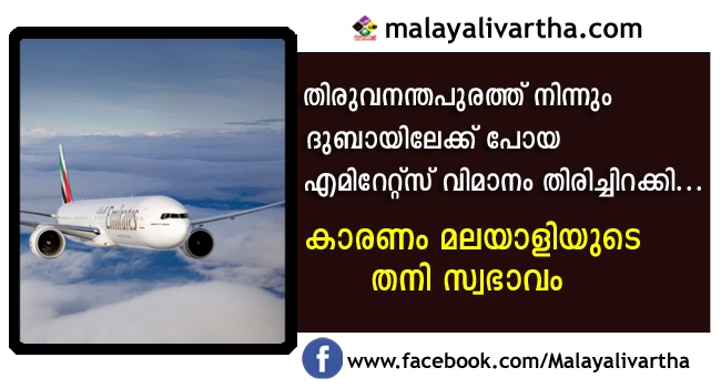 വെള്ളിയാഴ്ച രാവിലെ തിരുവനന്തപുരത്ത് നിന്നും ദുബായിലേക്ക് പുറപ്പെട്ട എമിറേറ്റ്സ് വിമാനം പകുതി ദൂരം പിന്നിട്ട ശേഷം തിരിച്ചിറക്കിയതിന് കാരണം യാത്രക്കാരിയുടെ അശ്രദ്ധ. അശ്രദ്ധയോടെ മുകളിലെ ലോക്കറില് നിന്നും വലിച്ചെടുത്ത ഹാന്ഡ് ബാഗ് ദേഹത്ത് വീണ് സഹയാത്രക്കാരിയ്ക്ക് പരിക്കേറ്റതിനെ തുടര്ന്നാണ് EK521 വിമാനം തിരുവനന്തപുരത്ത് തിരിച്ചിറക്കിയത്.