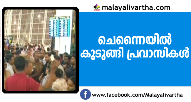 നെടുമ്പാശ്ശേരി വിമാനത്താവളത്തില് സ്വീകരിക്കാനെത്തിയ ബന്ധുക്കളും സുഹൃത്തുക്കളും പ്രതിഷേധത്തിലാണ്. ചെന്നൈയില് പെട്ടുപോയ നൂറോളം മലയാളി യാത്രക്കാര് ഉള്പ്പെടെയുള്ളവര് കടുത്ത പ്രതിഷേധത്തിലാണ്. അധികൃതരുടെ ഭാഗത്തുനിന്നു നിഷേധ നിലപാടാണെന്നു യാത്രക്കാര് പരാതിപ്പെട്ടു.