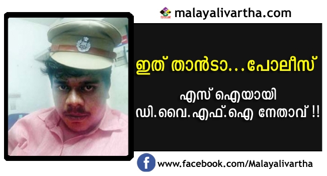 എസ്.ഐയുടെ തൊപ്പിവെച്ച് ഡി.വൈ.എഫ്.ഐ നേതാവിന്റെ ഒരു കോട്ടയം സെൽഫി...