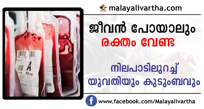 ഒരാഴ്ച മുന്പാണ് ഡെങ്കിപ്പനി ബാധിച്ച് യുവതിയെ ആശുപത്രിയില് പ്രവേശിപ്പിച്ചത്. ഹീമോഗ്ലോബിന്റെയും പ്ലേറ്റ്ലെറ്റിന്റെയും അളവ് കുറഞ്ഞ് ആരോഗ്യനില വഷളായ യുവതി ഒരു കാരണവശാലും രക്തം സ്വീകരിക്കാന് തയ്യാറായില്ല.