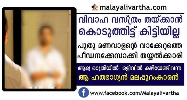 വിവാഹ വസ്ത്രം തയ്ച്ച് നൽകിയില്ല; ഒടുവിൽ തയ്യൽകാരിയുമായി പുതുമണവാളന്റെ വാക്കേറ്റം പീഡന കേസായി, ആദ്യരാത്രി ഒളിവിലിരിക്കാൻ വിധിക്കപെട്ട വരൻ