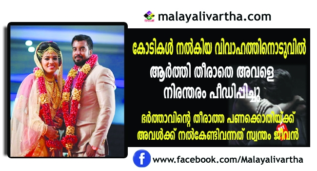 കോടികൾ വിലമതിക്കുന്ന ഭൂമി, ഒരു കോടി രൂപയും ഇന്നോവ കാറും ഒരു കിലോ സ്വർണാഭരണവും നൽകി കെട്ടിയയച്ചിട്ടും അവരുടെ കണ്ണുകൾ നിറഞ്ഞില്ല; ഒടുവിൽ നവവധുവിന്റെ തൂങ്ങി മരണത്തിലേക്ക് നയിച്ചത് ഭര്ത്താവിന്റെ തീരാത്ത പണക്കൊതി
