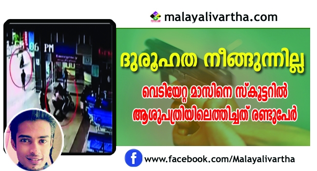 വെടിയേറ്റ മാസിനെ സ്കൂട്ടറില് ആശുപത്രിയിലെത്തിച്ചത് രണ്ടുപേര്; യുവാവിനെ ഉപേക്ഷിച്ച് ഇവര് കടന്നു കളഞ്ഞു; സിസിടിവി ദൃശ്യങ്ങള് പുറത്ത്