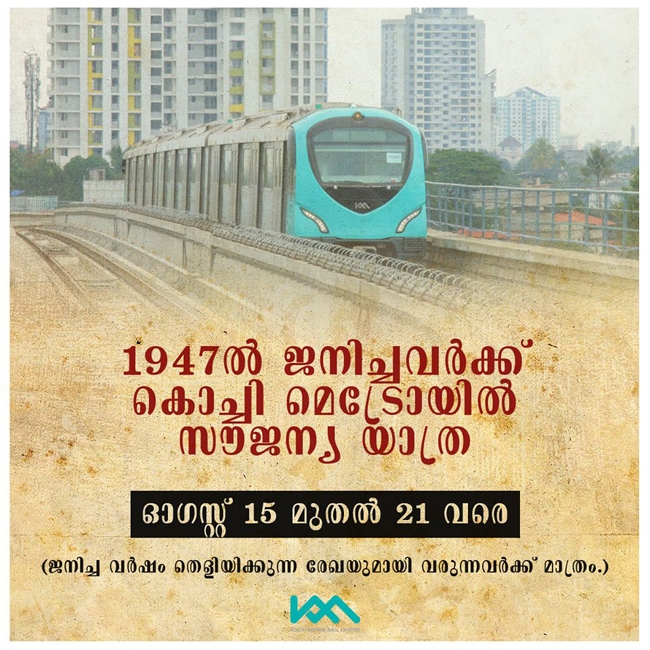 1947ല് ജനിച്ചവര്ക്ക് കൊച്ചി മെട്രോയുടെ സമ്മാനം