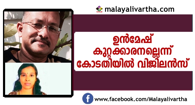 സൗമ്യ കേസ്: പോസ്റ്റ്മോര്ട്ടം റിപ്പോര്ട്ട് വിവാദത്തില് ഡോ. ഉന്മേഷ് കുറ്റക്കാരനല്ല; അവിഹിത നേട്ടം ഉണ്ടാക്കിയില്ലെന്ന് വിജിലന്സ് റിപ്പോര്ട്ട്