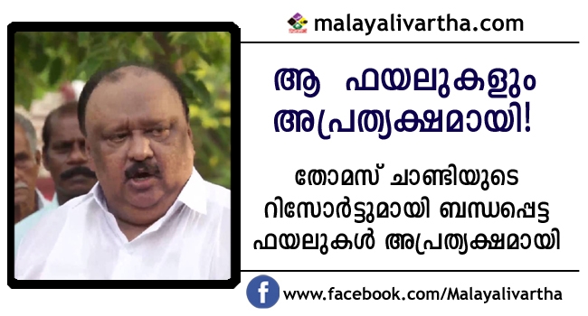 തോമസ് ചാണ്ടിയുടെ ഉടമസ്ഥതയിലുള്ള ലേക് പാലസ് റിസോർട്ടുമായി ബന്ധപ്പെട്ട 30ൽ അധികം ഫയലുകൾ അപ്രത്യക്ഷമായെന്ന് നഗരസഭ. വിവരാവകാശ നിയമപ്രകാരം ചോദിച്ചിട്ടും രേഖകൾ നൽകിയില്ല. ഇതിനിടെ ആലപ്പുഴയിൽ എൻസിപി പ്രവർത്തകർ മന്ത്രി തോമസ് ചാണ്ടിയുടെ കോലം കത്തിച്ചു. ശശീന്ദ്രൻ വിഭാഗം പ്രവർത്തകരാണ് കോലം കത്തിച്ചത്. മന്ത്രി രാജിവെക്കണമെന്നാവശ്യപ്പെട്ടാണ് പ്രതിഷേധം. എന്നാൽ കോലം കത്തിച്ചത് അപലപനീയമെന്ന് എ കെ ശശീന്ദ്രൻ പ്രതികരിച്ചു