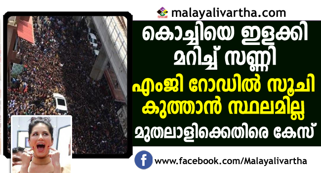 ഫോണ് 4 ഷോറൂം ഉദ്ഘാടനം ചെയ്യാനാണ് സണ്ണി ലിയോണ് കൊച്ചിയില് എത്തിയത്. ആയിരക്കണക്കിന് ആരാധകരാണ് സണ്ണി ലിയോണിനെ കാണാന് എംജി റോഡില് എത്തിയത്. ഉച്ചയ്ക്ക് പന്ത്രണ്ടരയോടെ എത്തിയ സണ്ണി ലിയോണിനെ കാത്ത് രാവിലെ മുതല് തന്നെ ആരാധകര് എംജി റോഡില് എത്തിയിരുന്നു. സമീപത്തെ എസ്ബിഐ ശാഖയുടെ മുകളിലും അതുവഴി കടന്നു പോയ ബസിന് മുകളിലും പലരും വലിഞ്ഞു കയറി.