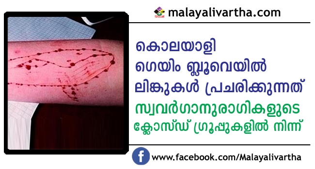 കൊലയാളി ഗെയിമിന് കേരളത്തിലും ആരാധകര്;ബ്ലൂ വെയിൽ ലിങ്കുകള് സ്വവർഗാനുരാഗികളുടെ ക്ലോസ്ഡ് ഗ്രൂപ്പുകൾ വഴി പ്രചരിക്കുന്നു