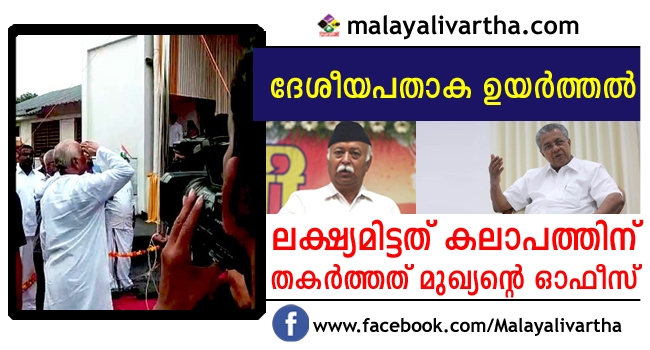 ഭാഗവതിന്റെ ദേശീയപതാക ഉയര്ത്തല്: പൊലീസിന്റെ ഇടപെടല് തടഞ്ഞ് ബിജെപിയുടെ ഗൂഢപദ്ധതി പൊളിച്ചത് മുഖ്യമന്ത്രിയുടെ ഓഫിസ്