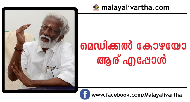 അതെല്ലാം മറന്നേക്കൂ എന്ന് കുമ്മനം. മെഡിക്കല് കോഴയില് മലക്കം മറിഞ്ഞ് ബിജെപി സംസ്ഥാന അധ്യക്ഷന് കുമ്മനം രാജശേഖരന്. കോഴ സംബന്ധിച്ച അന്വേഷണറിപ്പോര്ട്ട് തനിക്ക് ഇതുവരെ ലഭിച്ചിട്ടില്ലെന്ന് കുമ്മനം വിജിലന്സിന് മുമ്പാകെ ഹാജരായി പറഞ്ഞു. പുറത്ത് പ്രചരിക്കുന്ന ഫോട്ടോ കോപ്പി പ്രകാരം പാര്ട്ടി നേതാക്കള്ക്കെതിരെ നടപടി സാധ്യമല്ലെന്നും കുമ്മനം വ്യക്തമാക്കി.