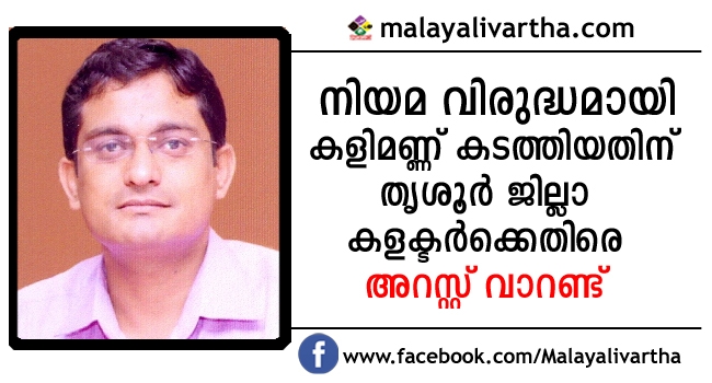തൃശൂര് സിറ്റി പോലീസ് കമീഷണര്ക്കാണ് കളക്ടറുടെ അറസ്റ്റ് രേഖപ്പെടുത്താന് നിര്ദ്ദേശം നല്കിയത്. കുളം നിര്മാണത്തിന്റെ മറവില് കളിമണ്ണ് കടത്തിയതില് നടപടി സ്വീകരിക്കുന്നില്ല എന്ന് ചൂണ്ടിക്കാട്ടി പി.എന് മുകുന്ദനാണ് കളക്ടര്ക്കെതിരെ പരാതി നല്കിയത്. ജാമ്യം നല്കാവുന്ന കുറ്റമാണ് കളക്ടര്ക്കെതിരെ ചുമത്തിയത്.