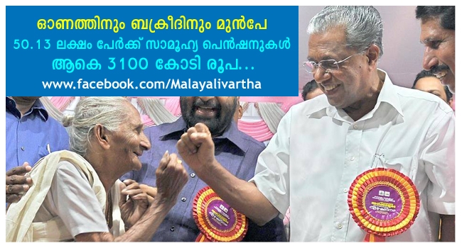 ഓണം-ബക്രീദ് ആഘോഷങ്ങള്ക്ക് മുമ്പ് എല്ലാ പെന്ഷനുകളും ഗുണഭോക്താക്കള്ക്ക് വിതരണം ചെയ്യുമെന്ന് മുഖ്യമന്ത്രി