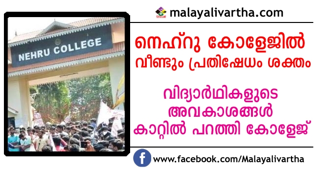 ജിഷ്ണു പ്രണോയിയുടെ ആത്മഹത്യയ്ക്ക് ശേഷമുണ്ടാക്കിയ ഒത്തുതീര്പ്പ് ധാരണകള് കാറ്റില് പറത്തി നെഹ്റു കോളേജ്