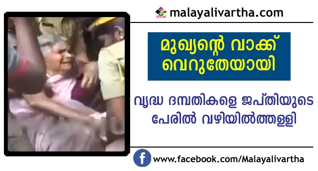 തൃപ്പൂണിത്തുറയില് ജപ്തിയുടെ പേരില് വൃദ്ധ ദമ്പതികളെ പൊലീസ് വലിച്ചിഴച്ചു: സിപിഐഎം ഭരണത്തിലുള്ള ബാങ്കിന്റേതാണ് നടപടി