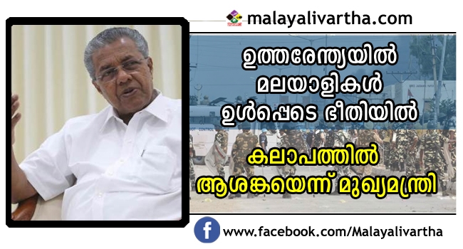 ഉത്തരേന്ത്യയിലെ കലാപത്തില് ആശങ്കയുളവാക്കുന്നുവെന്ന് പിണറായി