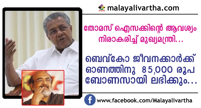 ബെവ്കോ ജീവനക്കാര്ക്ക് 85000 രൂപ ബോണസ് നല്കും; ഡെപ്യുട്ടേഷനില് വന്നവര്ക്ക് ഇല്ല!