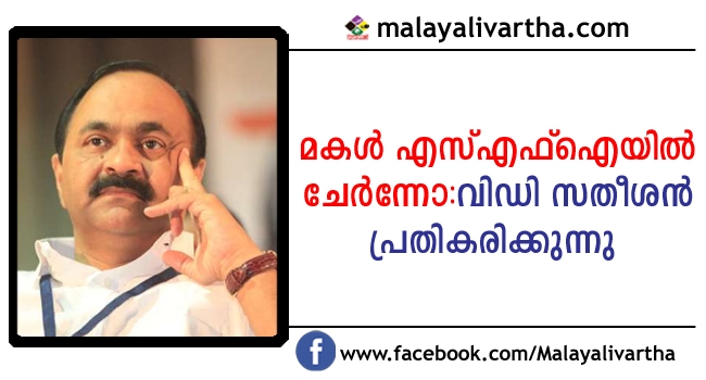 എന്റെ മകള് എസ് എഫ് ഐയില് ചേര്ന്നു എന്ന വ്യാജ പ്രചരണം ഇന്ന് രാവിലെ മുതല് സോഷ്യല് മീഡിയയില് നടക്കുകയാണ് . ഇത് ശുദ്ധ അസംബന്ധമാണ് . അവള് കോളേജിലെ കെ.എസ്.യു .പ്രവര്ത്തകയാണ് . നേതാവല്ല . കോളേജിലെ കെ.എസ്.യു . യൂണിറ്റ് ജനസേവ ശിശുഭവനില് കുട്ടികള്ക്ക് സൗജന്യമായി ട്യൂഷ്യന് എടുക്കുവാന് പോയപ്പോള് അവള് ആ ടീമിലെ വോളണ്ടിയറായിരുന്നു. സത്യമിതായിരിക്കെ എന്നെ അപകീര്ത്തിപ്പെടുത്തുവാന് എന്റെ മകളെ വലച്ചിഴക്കുന്നത് ദൗര്ഭാഗ്യകരമാണ്.