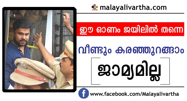 നടിയെ ആക്രമിച്ച കേസില്‍ ദിലീപിന് ഹൈക്കോടതി ജാമ്യം നിഷേധിച്ചു. കേസന്വേഷണം നടക്കുന്ന ഘട്ടത്തില്‍ ജാമ്യം നല്‍കിയാല്‍ അത് അന്വേഷണത്തെ സാരമായി ബാധിക്കുമെന്ന് കോടതി കണ്ടെത്തി. ഇതോടെ 50 ദിവസം പിന്നിട്ട ദിലീപിന് ഇനിയും ജയിലില്‍ തുടരാം. ഹൈക്കോടതി രണ്ടാം പ്രാവശ്യവും ജാമ്യം നിഷേധിച്ചപ്പോള്‍ ദിലീപിന്റെ സകല പ്രതീക്ഷകളും തളരുകയാണ്. ഇനി ജാമ്യം കിട്ടുക ബുദ്ധിമുട്ടാണ്. ഓണത്തിന് മുമ്പ് ഒരു ജാമ്യാപേക്ഷയും പരിഗണിക്കില്ല. അതോടെ ദിലീപിന് കാവ്യയുമൊത്തുള്ള ആദ്യ ഓണം ഒരുമിച്ചുണ്ണാനാകില്ല.
