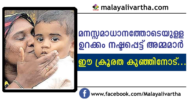 ഉമ്മയ്ക്കൊപ്പം ഉറങ്ങിക്കിടന്ന ഒന്നര വയസ്സുകാരനെ കള്ളന്മാര് തട്ടിയെടുത്ത് ഒന്നര പവന് മാലയും ഒരു പവന്റെ അരഞ്ഞാണവും കവര്ന്നു. തുടര്ന്നു വീട്ടില്നിന്നു നൂറു മീറ്റര് അകലെ കിടക്കവിരിയില് പൊതിഞ്ഞ കുഞ്ഞിനെ റോഡരികില് ഉപേക്ഷിച്ചു. ഈ സംഭവമറിഞ്ഞതോടെ അമ്മമാര്ക്ക് രാത്രിയില് മനസ്സമാധാനത്തോടെ കിടന്നുറങ്ങാന് കഴിയാതെയായി.