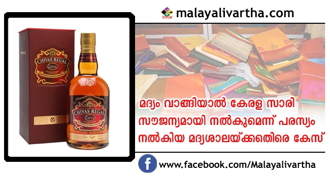 മദ്യം വാങ്ങിയാൽ കേരള സാരി സൗജന്യമായി നൽകുമെന്ന് പരസ്യം നൽകിയ സംഭവത്തിൽ മദ്യശാലയ്ക്കതെിരെ കേസ്. കൊച്ചി വിമാനത്തവാളത്തിലെ ഡ്യൂട്ടിപെയ്ഡ് ഷോപ്പിലെ അസിസ്റ്റന്റ് ജനറൽ മാനേജർ ജേക്കബ് എബ്രഹാമിനെതിരെയാണ് കേസ്. കഴിഞ്ഞ ദിവസമാണ് ഈ പരസ്യം നവമാധ്യമങ്ങളിൽ വൈറലായത്. ഒരു മിനിറ്റിലേറെ ദൈർഘ്യമുള്ള പരസ്യമാണ് പ്രചരിച്ചത്. ആലുവ എക്സൈസാണ് കേസെടുത്തിരിക്കുന്നത്.