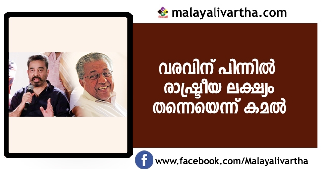 ഉലകനായകന് കമല് ഹാസ്സനും കേരള മുഖ്യമന്ത്രി പിണറായി വിജയനും തമ്മിലുള്ള കൂടിക്കാഴ്ച്ച അവസാനിച്ചു. കഴിഞ്ഞ ഓണത്തിന് ഇവിടേക്ക് വരാനിരുന്നതാണെന്ന് കമല് തിരുവനന്തപുരത്ത് വെച്ച് പറഞ്ഞു. മുഖ്യമന്ത്രി പിണറായി വിജയനുമായുള്ള കൂടിക്കാഴ്ചയില് രാഷ്ട്രീയ ലക്ഷ്യവുമുണ്ടെന്ന് നടന് കമല് ഹാസന്. ഇതൊരു പഠനാവസരം കൂടിയാണ്. പിണറായി വിജയന്റെ അനുഭവങ്ങള് മനസിലാക്കാനുള്ള സന്ദര്ഭമാണ്.