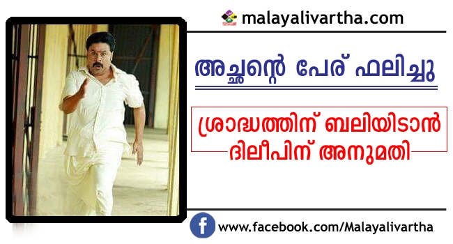 അച്ഛന്റെ ശ്രാദ്ധത്തിന് ബലിയിടാൻ ദിലീപിന് അനുമതി
