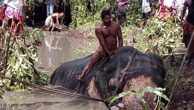 അവസാനം രക്ഷപ്പെട്ടു...ചതുപ്പില് കുടുങ്ങിയ ആനയെ മണിക്കൂറുകള്ക്കുശേഷം കരയ്ക്ക് കയറ്റി
