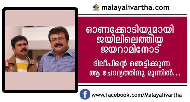 തിരുവോണത്തിന് എന്തെങ്കിലും അസൗകര്യം ഉണ്ടായാൽ ഓണ ദിനങ്ങളിൽ ഏതിലെങ്കിലും ഇവർ തമ്മിൽ കാണുകയും ചെയ്യും. പരസ്പരം ഓണ സമ്മാനങ്ങൾ കൈമാറുകയും ചെയ്യും. പക്ഷേ ഈ വർഷം ജയിലിൽ ആയ പ്രിയ കൂട്ടുകാരനെ കാണാൻ വന്ന ജയറാം ദിലീപിനുള്ള ഓണക്കോടിയും ആയാണ് എത്തിയത്. ദിലീപും ജയറാമും പരസ്പരം സംസാരിച്ചതിന്റെ വിശദാംശങ്ങൾ ഇപ്പോൾ പുറത്ത് വരികയാണ്.