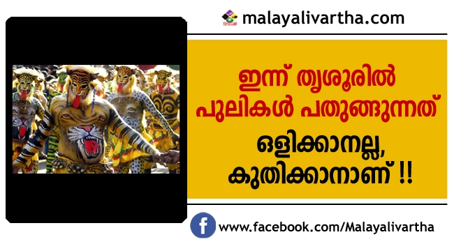 ഓണാഘോഷത്തിന് സമാപനം കുറിച്ച് ഇന്ന് തൃശൂരില് പുലിക്കൂട്ടമിറങ്ങും. ആറ് ടീമുകളായി മുന്നൂറോളം പുലികളും നിശ്ചലദൃശ്യങ്ങളും കാഴ്ചയുടെ വിരുന്നൊരുക്കും. പന്ത്രണ്ട് പെണ്പുലികളും ഇത്തവണ ചുവടുവെക്കും. എഎസ്ഐ വിനയയുടെ നേതൃത്വത്തിലാണ് പെണ്പുലികള് ഇറങ്ങുക. കഴിഞ്ഞ വർഷം 11 ടീമുണ്ടായിരുന്നു. വിയ്യൂർ, കാനാട്ടുകര, കോട്ടപ്പുറം, അയ്യന്തോൾ, നായ്ക്കനാൽ പുലിക്കളി സമാജം, നായ്ക്കനാൽ വടക്കേ അങ്ങാടി എന്നിവയാണ് ഇത്തവണ രംഗത്തുള്ള ടീമുകൾ. ഒരു ടീമിൽ പരമാവധി 55 പുലികളെ പാടുള്ളൂവെന്ന് നിയന്ത്രണമുണ്ട്.