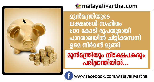 ജനങ്ങളെ കബളിപ്പിച്ച് സ്വകാര്യ ചിട്ടി ഉടമ 600 കോടിയോളം രൂപ വെട്ടിച്ച് മുങ്ങി. കളിയിക്കാവിള പളുകല് നിര്മ്മല് കൃഷ്ണ ബാങ്കേഴ്സ് ഉടമ നിര്മ്മലാണ് സ്ഥാപനം അടച്ചു മുങ്ങിയത്. പതിനായിരത്തോളം പേരില് നിന്ന് 600 കോടിയോളം നിക്ഷേപമുള്ള സ്ഥാപനമാണിത്. നിരവധി കുടുംബങ്ങൾ ആത്മഹത്യയുടെ വക്കിലാണ്. നിക്ഷേപകർക്ക് മറ്റു ബാങ്കുകൾ നല്കുന്നതിനേക്കാളും പതിന്മടങ്ങ് തുക വാഗ്ദാനം ചെയ്ത് സാധാരണക്കാരെ നിക്ഷേപകരാക്കുകയായിരുന്നു. കബളിപ്പിക്കപ്പെട്ടവരുടെ കൂട്ടത്തിൽ കേരളത്തിലെ ഒരു മുൻമന്ത്രിയുൾപ്പെടെ പ്രമുഖ പാർട്ടികളുടെ രാഷ്ട്രീയനേതാക്കളും ഉൾപ്പെടുന്നു.