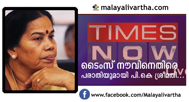 യാത്രബത്തയെ സംബന്ധിച്ച് വ്യാജ വാര്ത്ത പ്രസിദ്ധീകരിച്ച ടൈംസ് നൗ ചാനലിനെതിരേ പി.കെ ശ്രീമതി എം.പി പരാതി നല്കി. ടൈംസ് നൗ ചാനലിനെതിരെ നടപടിയെടുക്കണമെന്നാവശ്യപ്പെട്ട് ലോക്സഭാ സ്പീക്കര്ക്കാണ് പരാതി നല്കിയത്.