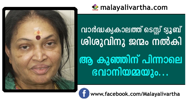 സംസ്ഥാനത്തെ ആദ്യത്തെ ടെസ്റ്റ് ട്യൂബ് ശിശുവിനു ജന്മം നൽകിയ ഭവാനിയമ്മ യാത്രയായി