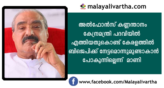 അൽഫോൻസ് കണ്ണന്താനം കേന്ദ്രമന്ത്രി പദവിയിൽ എത്തിയതുകൊണ്ട് കേരളത്തിൽ ബിജെപിക്ക് നേട്ടമൊന്നുമുണ്ടാകാൻ പോകുന്നില്ലെന്ന് കേരള കോൺഗ്രസ്-എം ചെയർമാൻ കെ.എം.മാണി. കോട്ടയത്ത് വാർത്താ സമ്മേളനത്തിൽ സംസാരിക്കുകയായിരുന്നു അദ്ദേഹം.