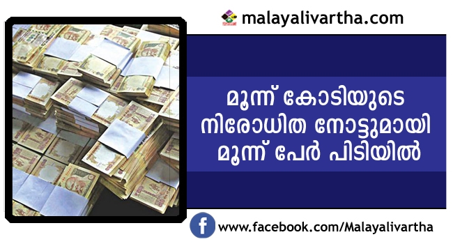 പെരിന്തല്മണ്ണയില് മൂന്ന് കോടി രൂപയുടെ നിരോധിച്ച നോട്ടുകളുമായി മൂന്ന് പേർ പോലീസിന്റെ പിടിയിൽ