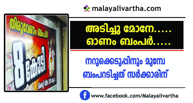 ഓണം ബംപര് ആയ പത്ത് കോടിയില് കണ്ണുംനട്ട് 70 ലക്ഷത്തോളം പേര്: ബമ്പറടിച്ചത് സര്ക്കാരിന്!