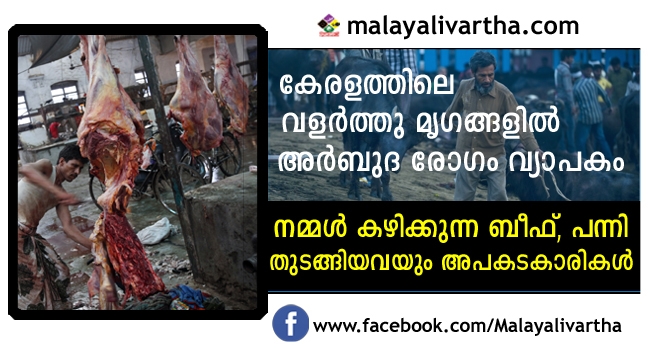 വളർത്തുമൃഗങ്ങളിൽ അർബുദം വർധിക്കുന്നതായി മൃഗസംരക്ഷണ വകുപ്പിന്റെ അന്വേഷണ റിപ്പോർട്ട്. സംശയമുള്ള മൃഗങ്ങളുടെ സാമ്പിളുകൾ ശേഖരിച്ച് നടത്തിയ പരിശോധനയിലും അന്വേഷണത്തിലുമാണ് അർബുദബാധ കണ്ടെത്തിയത്.