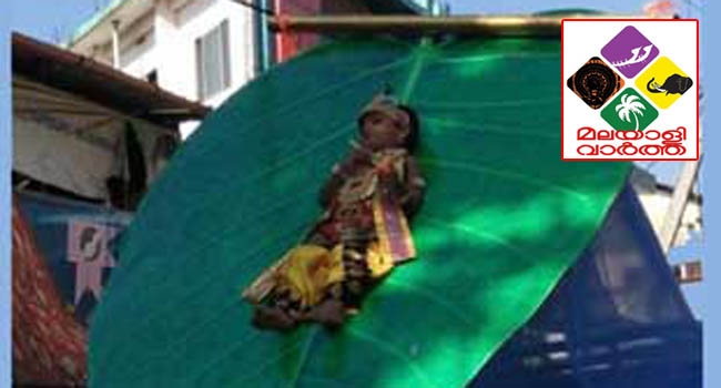 ആലിലയിലുറങ്ങുന്ന കൃഷ്ണന്റെ പ്രതീകാത്മക രൂപം സൃഷ്ടിക്കാന് ആലിലയുടെ രൂപത്തിലുണ്ടാക്കിയ ചെരിഞ്ഞ പ്ലാറ്റ്ഫോമില് ശ്രീകൃഷ്ണ വേഷം ധരിച്ച കുട്ടിയെ കെട്ടിയിടുകയായിരുന്നു. കുട്ടിയുടെ അരഭാഗം ഇലയില് കെട്ടിവച്ചിരിക്കുകയായിരുന്നു. ഉച്ചയ്ക്ക് പയ്യന്നൂര് പുതിയ ബസ് സ്റ്റാന്ഡ് പരിസരത്ത് നിന്നുമാണ് ഘോഷയാത്ര ആരംഭിച്ചത്.