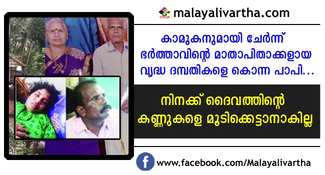 കാമുകനുമായി ചേർന്ന് ഭർത്താവിന്റെ മാതാപിതാക്കളായ വൃദ്ധ ദമ്പതികളെ ക്രൂരമായി കൊലപ്പെടുത്തിയ കേസിൽ മരുമകൾ അറസ്റ്റിൽ