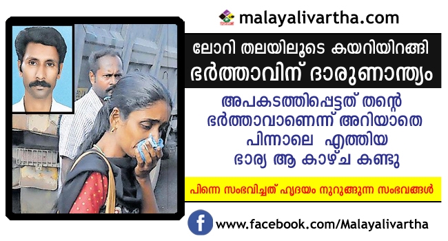 ലോറിക്കടിയിൽപ്പെട്ട് മരിച്ചത് ഭർത്താവാണെന്ന് അറിയാതെ പിന്നാലെ ബസിൽ എത്തിയ ഭാര്യ ചങ്കുപിളർക്കുന്ന ആ കാഴ്ചകണ്ട് ഞെട്ടി; പിന്നെ സംഭവിച്ചത്...
