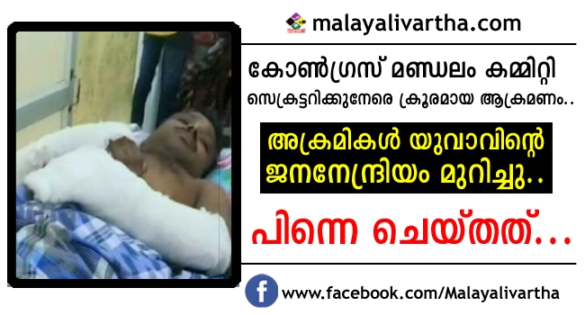 കോൺഗ്രസ് നേതാവിനുനേരെ അജ്ഞാതസംഘത്തിന്റെ ക്രൂരമായ മർദനം.. അക്രമികൾ യുവാവിന്റെ ജനനേന്ദ്രിയം മുറിച്ചു