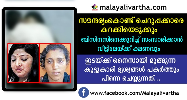 ചെറുപ്പക്കാരെ വലയില് വീഴ്ത്തി ബിസിനസ് സംസാരിക്കാന് ഇബിയും വിദ്യയും വീട്ടിലേക്ക് വിളിച്ചുകൊണ്ടുപോകും; ഇടയ്ക്ക് നൈസായി മുങ്ങുന്ന വിദ്യ ദൃശ്യങ്ങൾ പകർത്തും: പിന്നെ ചെയ്തത് ഇങ്ങനെ...