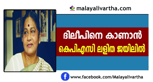മുതിർന്ന നടിയും സംഗീത നാടക അക്കാഡമി ചെയർപേഴ്സണുമായ കെപിഎസി ലളിത ജയിലിൽ കഴിയുന്ന നടൻ ദിലീപിനെ സന്ദർശിച്ചു. ആലുവ സബ് ജയിലിൽ എത്തിയാണ് ലളിത ദിലീപിനെ കണ്ടത്. ദിലീപിന്റെ സഹോദരിയും ലളിതയ്ക്ക് ഒപ്പമുണ്ടായിരുന്നു.