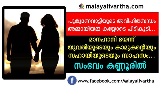 പുതുമോടി തീരുന്നതിന് മുന്നേ പുതുമണവാട്ടിയുടെ അവിഹിതബന്ധം അമ്മായിയമ്മ കൈയോടെ പിടികൂടി. കാഞ്ഞങ്ങാടിനടുത്തുള്ള പ്രദേശത്താണ് നാട്ടുകാരെ ഒന്നടങ്കം നടുക്കിയ സംഭവമുണ്ടായത്. വീട്ടില് അമ്മായിയമ്മ ഇല്ലാതിരുന്ന സമയം നോക്കി യുവതി തന്റെ രഹസ്യക്കാരനെ വീട്ടില് വിളിച്ചു വരുത്തുകയായിരുന്നു.