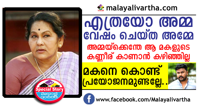 ദിലീപിനെ ജയിലിലെത്തി കണ്ട പ്രമുഖ നടി കെപിഎസി ലളിത കൂടുതല് വിവാദത്തിലേക്ക്. ഇതറിഞ്ഞ് ശക്തമായാണ് സോഷ്യല് മീഡിയ പ്രതികരിച്ചിരിക്കുന്നത്. എത്രയോ അമ്മ വേഷം ചെയ്ത അമ്മയാണ് ലളിത. മാത്രമല്ല അവരും ഒരു അമ്മയാണ്. മക്കള്ക്ക് ആപത്തെത്തുമ്പോള് ഓടിയെത്തേണ്ടത് ആ അമ്മയാണ്. എന്നാല് ഈ അമ്മ സംഗീത നാടക അക്കാഡമി ചെയര്പേഴ്സണായിരിക്കെ ആക്രമിക്കപ്പെട്ട നടിയെ കാണാതെ നാലാം പ്രാവശ്യവും ജാമ്യം നിഷേധിച്ച പ്രതിയെ കാണാനാണ് പോയത്. അമ്മയ്ക്ക് ഈ മകളുടെ കണ്ണീര് കാണാന് എന്താണ് പറ്റാത്തതെന്നാണ് അവരുടെ ചോദ്യം. മകനെ കൊണ്ട് പ്രയോജനമുണ്ട്. ഇനിയും വേഷം കിട്ടും. മകളാകട്ടെ അബല.