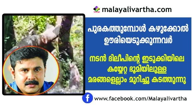 കയ്യേറ്റഭൂമിയാണെന്ന് ആരോപണമുയര്ന്ന നടന് ദിലീപിന്റെ വെള്ളിയാമ്പറ്റത്തെ ഭൂമിയില് നിന്ന് മരങ്ങള് മുറിച്ച് കടത്താന് ശ്രമം.