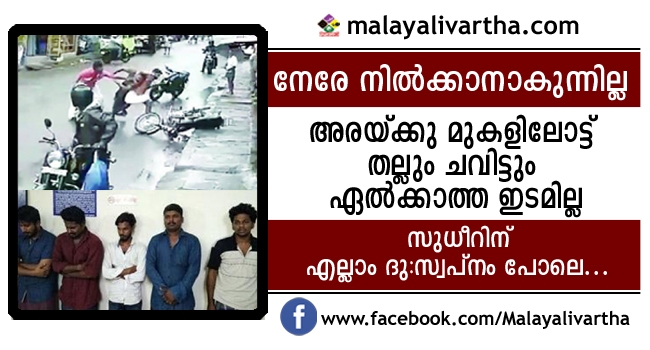 പാചകത്തിനു പോയിമടങ്ങിവരുന്ന വഴിയാണ് മൃഗീയമര്ദനത്തിന് സുധീര് ഇരയാകുന്നത്. കഴിഞ്ഞതൊന്നും ഓര്ക്കാന് സുധീര് ഇഷ്ടപ്പെടുന്നില്ല. െബെക്കില് വീട്ടിലേക്കു മടങ്ങുംവഴിയാണ് മുടപുരം ജങ്ഷനില് അപകടകരമായ രീതിയില് മറ്റൊരു െബെക്കില് രണ്ടുപേര് അഭ്യാസം കാണിക്കുന്നത് ശ്രദ്ധയില്പ്പെട്ടത്.