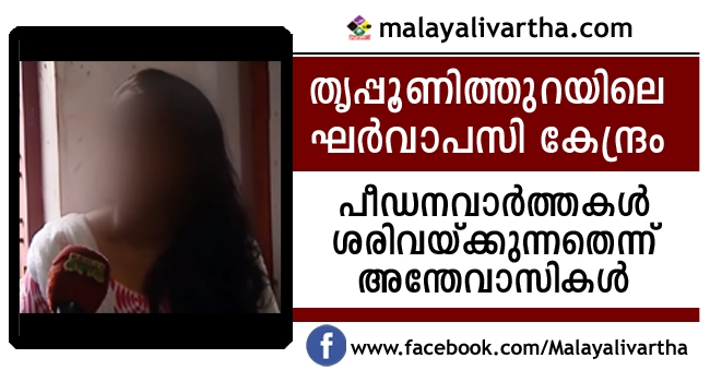 തൃപ്പൂണിത്തുറയില് ക്രിസ്ത്യന് യുവാവിനെ വിവാഹം ചെയ്തതിന്റെ പേരില് കൊടുപീഡനങ്ങള്ക്കും ഭീഷണികള്ക്കും ഇരയായ വിവാദയോഗ കേന്ദ്രത്തിന് ഇരയായ ആരോപണങ്ങള് ശരിവയ്ക്കുന്നതെന്ന് അന്തേവാസികള്. സ്ഥാപനത്തില് നിന്നും രക്ഷപ്പെടുകയും മോചനം ലഭിക്കുകയും ചെയ്ത അന്തേവാസികളാണ് വാര്ത്ത ശരിവച്ച് രംഗത്തെത്തിയത്.
