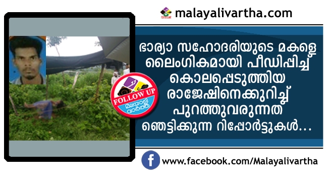 നടുക്കം വിട്ടുമാറാതെ ഏരൂർ ഗ്രാമം:ഏഴുവയസുകാരിയെ ക്രൂര ലൈംഗിക പീഡനത്തിനിരയാക്കി കൊലപ്പെടുത്തിയ ചിറ്റപ്പൻ രാജേഷ് മയക്കുമരുന്നിന് അടിമ; ബസിലെ യാത്രക്കാരായ പെണ്കുട്ടികൾക്ക് സ്ഥിരം ശല്യക്കാരൻ