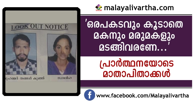 ദമ്പതികളുടെ തിരോധാനത്തിനൊടുവില് പോലീസ് ലുക്ക് ഔട്ട് നോട്ടീസ് പുറത്തിറക്കി